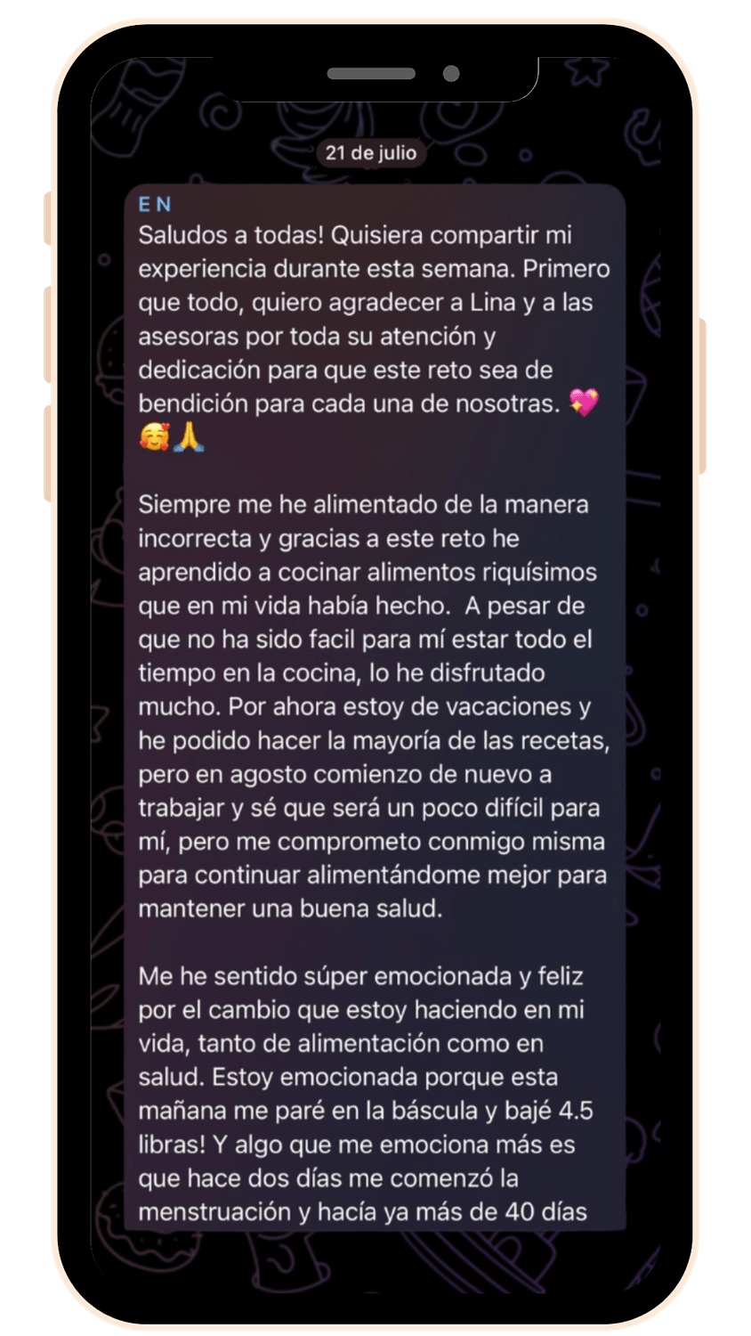 Consulta con tu médico antes de iniciar el reto, especialmente si estás bajo tratamiento médico o tienes una condición como diabetes, hipertensión o desequilibrios hormonales severos.