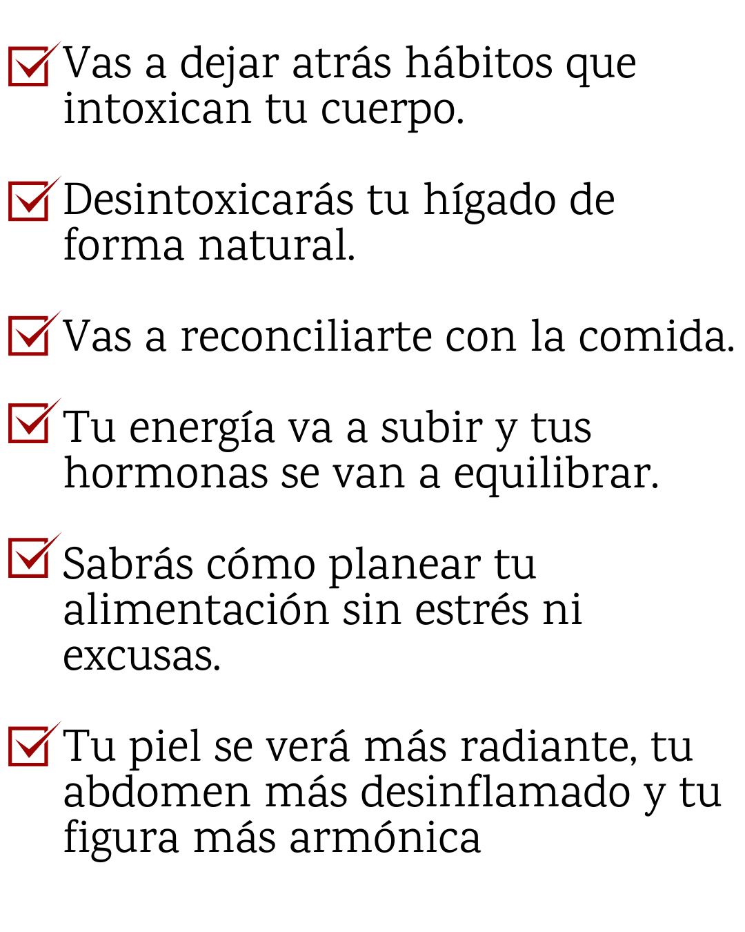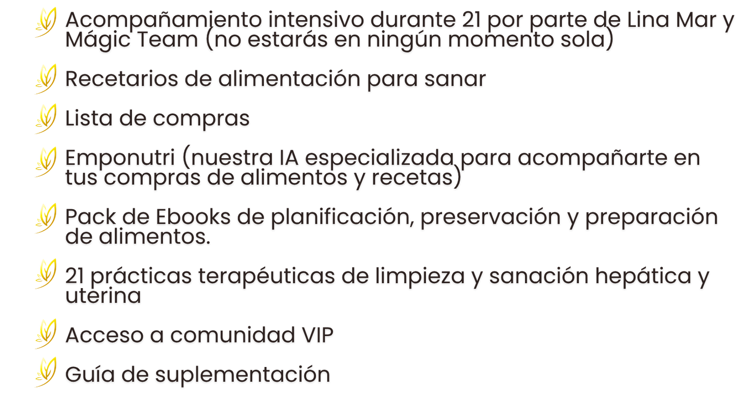 Es un programa de desintoxicación hepática diseñado para mejorar tu salud uterina y hormonal mediante una alimentación consciente, prácticas complementarias, y herramientas de apoyo.